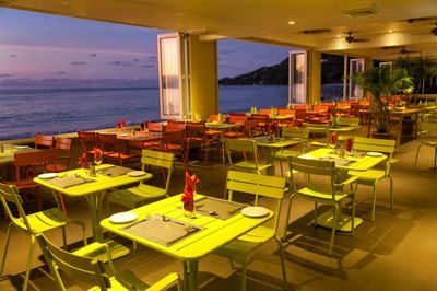 Hotel Coral Strand ima 3 restorana i 1 bar. The Island Trader s visokim stropovima pruža prekrasan pogled na Indijski ocean te na otoke Silhouette i North koji lagano odmaraju na horizontu. Ovdje možete uživati u doručku koji se poslužuje od 7:00 do 10:00 sati ili u večeri koja se poslužuje od 19:00 do 22:00 sata. Gosti mogu uživati u specijalitetima domaćih kuhara uz samoposluživanje hranom koja je svaki dan drugačija.