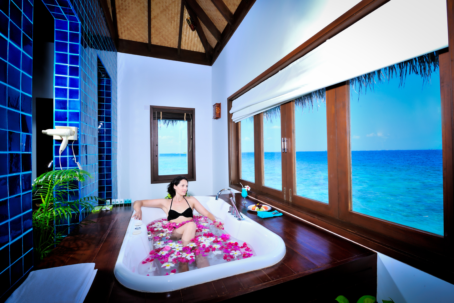 Površine 117 m2 za tri odrasle osobe ili dvije odrasle osobe i jednu bebu. Smještene su u jugozapadnom dijelu otoka na molu i imaju prekrasan pogled na zalazak sunca. Vila na vodi ima zaseban prostor za spavanje, kupaonicu s jacuzzijem, blagovaonicu i uređenu terasu s izlazom na more. Iz svih soba pruža se prekrasan pogled na more.