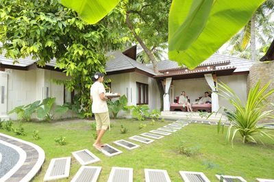 Hotel Holiday Island ima 142 bungalovov, locirani pod palmami, na plaži s privat terasami. Zunanjost terase je opremlejna z ležalniki.
